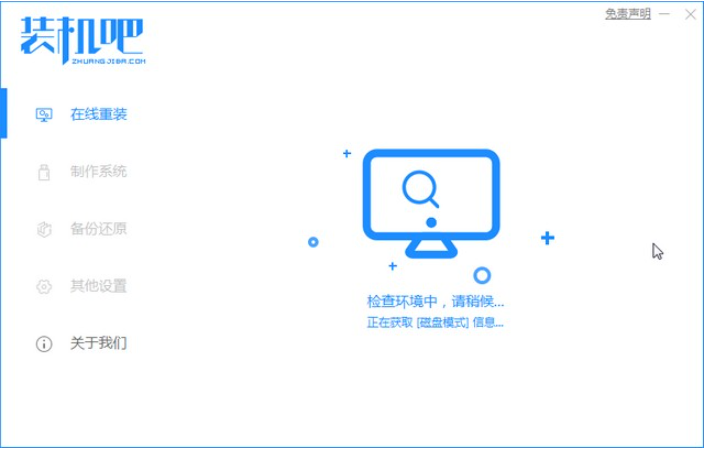 1、打开下载的[装机吧],将U盘安装到正常上网的计算机中,等待安装检查计算机的硬件信息。