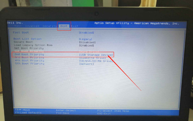 4、在BOOT菜单中,我们找到u盘对应的U盘选项,使用“+”移动至第一选项,按下F10保存并退出即可(一般情况下,带有“USB”字眼的选项,或者带有u盘品牌的选项,即为U盘选项)