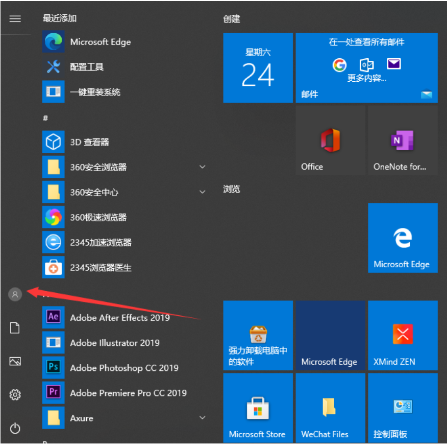 1、我们点击开始菜单,然后再点击那个登录头像。