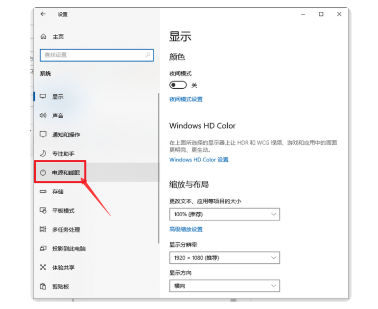 3、点击左侧栏的“电源和睡眠”选项。