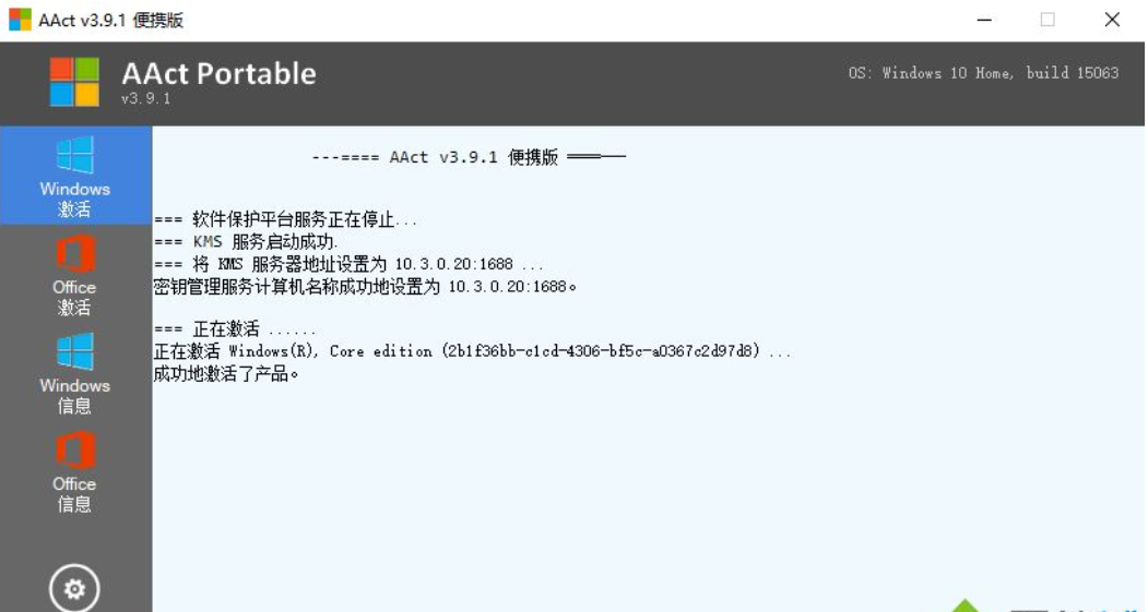 AAct是一款非常小巧实用的win10系统KMS激活工具,支持手动安装及删除激活产品密钥、手动创建及删除续期计划任务,该程序无需.NET Framework框架即可运行,相比其他win10激活工具而言,激活成功率更高!