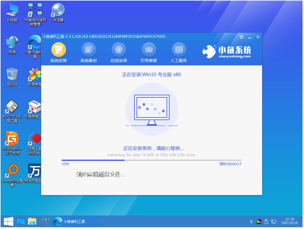 5、进入电脑pe界面后。打开小鱼装机工具继续进行安装系统操作。