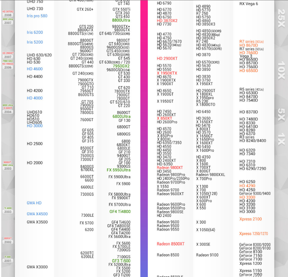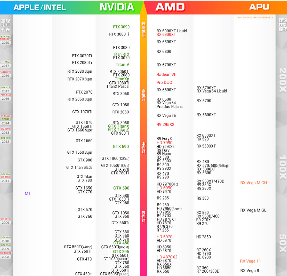 笔记本显卡天梯图: