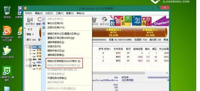4、如果要转换硬盘分区表,则右键整个硬盘,选择“转换分区表类型为GUID格式/MBR格式”
