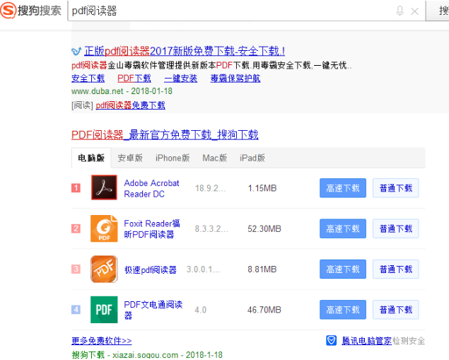 1.直接搜狗输入pdf阅读器,我们选择一个阅读器下载安装到我们的电脑上。
