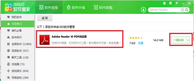 2.选择“Adobe Reader XI PDF阅读器”,点击“一键安装”。