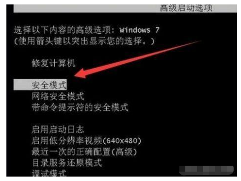 开机同时,不断的按一下松一下f8,直到出现模式选择界面。