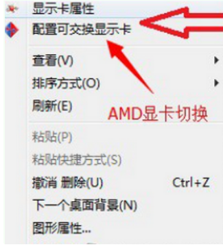 3、如果独立显卡是AMD的话,在桌面空白处点击鼠标【右键】,在弹出的选项中,点击【配置可交换显示卡】。