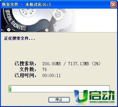 文件恢复的时间大概在5-10分钟以内,如下图显示是正在进行文件恢复工作的过程图。