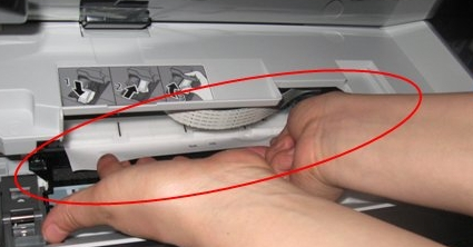 2、如果有墨盒挡住,可以先将墨盒拿开,慢慢抽出纸张即可。