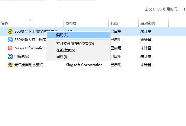 3、选中我们想要设置的应用,右击选择启动或者禁用。