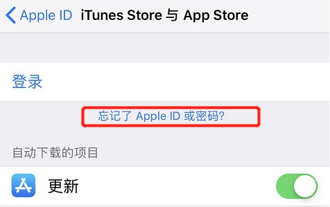 2、在【apple ID】页面点击下方的【itunes Store与APP Store】进入,在当前页面就可以看到有【忘记了Apple ID或密码?】的入口。