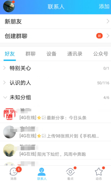1、首先,在手机上登录QQ,主页面如下图: