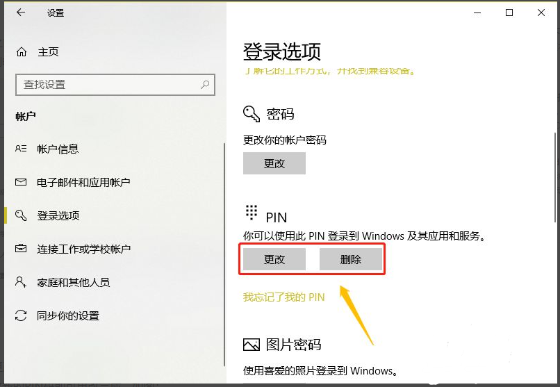 如果我们之前已经设置过PIN码,那么以上界面则会是下图的"更改"或者"删除"选项了。