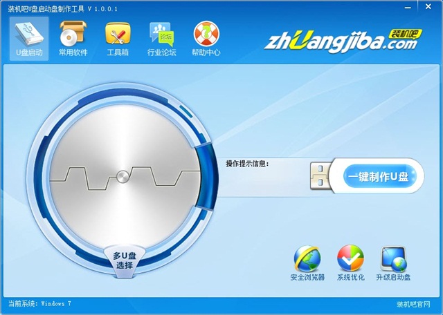 1、先下载U盘装机吧一键重装系统工具(下载地址:/),下载之后安装,插入U盘点击一键制作U盘