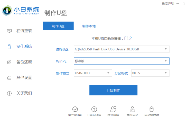 打开工具点击制作系统下的开始制作准备进行制作启动盘的操作