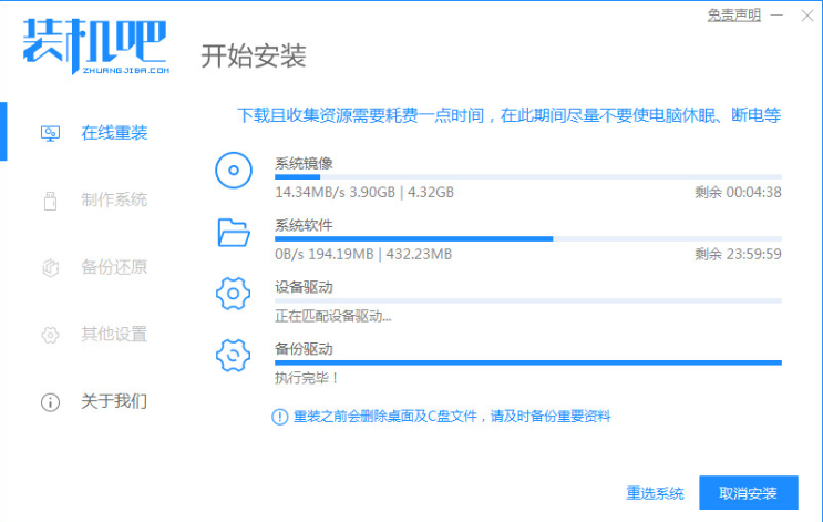 软件版本:装机吧一键重装系统 v2290+1个8g以上的空白u盘
