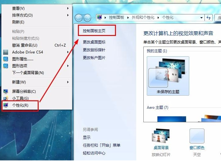 1.首先我们进入电脑的控制面板主页,控制面板可通过桌面鼠标右键选择个性化,在个性化中进入控制面板主页。