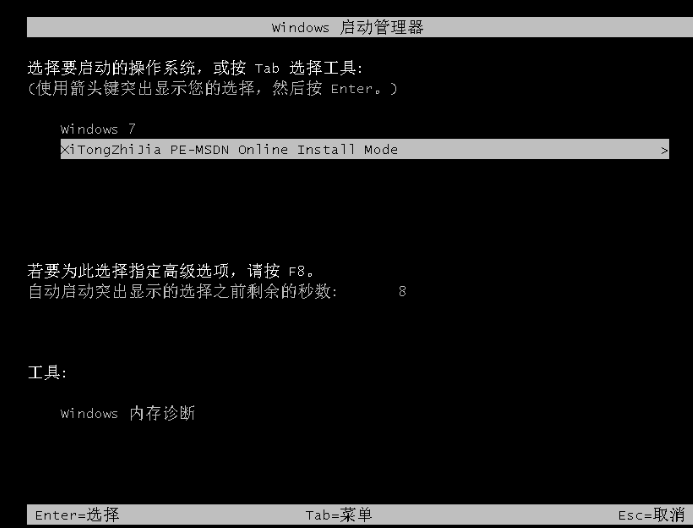5、重启之后系统会弹出windows启动管理器界面。选择第二个进入pe系统界面。