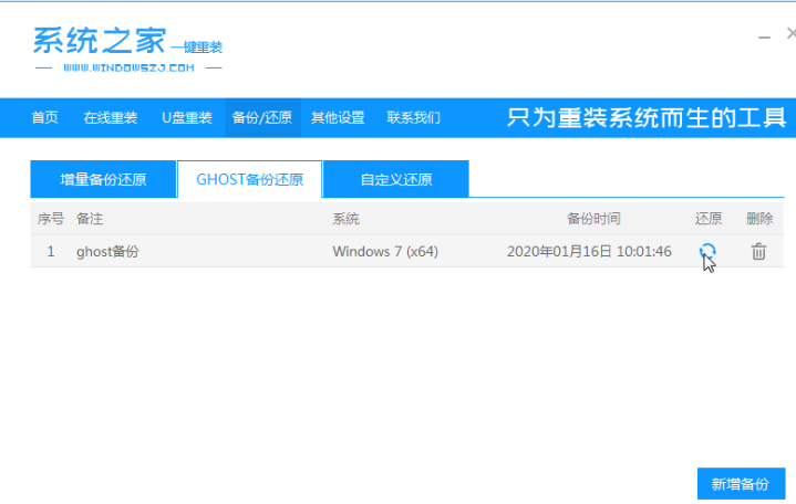 1、下载win7镜像解压到非系统盘,下载系统之家一键重装系统软件,点击[备份和还原]。(安装前备份好要的资料。)