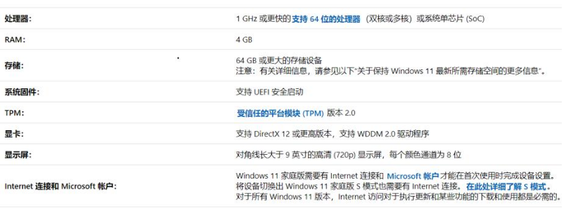 9、我们可以看到,win11相比win10的最低配置又有了很大的提升,将会需要更高配置的电脑才能升级。